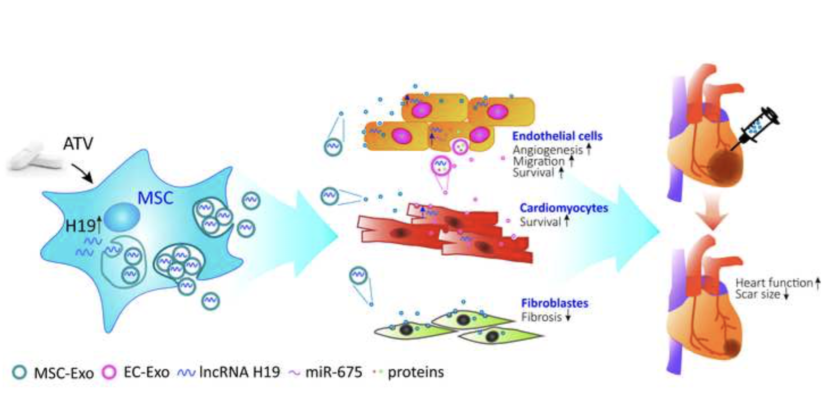 Peisen Huang, Li Wang, Qing Li, Xiaqiu Tian, Jun Xu, Junyan Xu, Yuyan Xiong, Guihao Chen, Haiyan Qian, Chen Jin, Yuan Yu, Ke Cheng, Li Qian*, Yuejin Yang*. Atorvastatin Enhances the Therapeutic Efficacy of Mesenchymal Stem Cells Derived Exosomes in Acute Myocardial Infarction via Up-regulating Long Non-coding RNA H19. Cardiovasc Res. 22 May 2019. doi: 10.1093/cvr/cvz139.