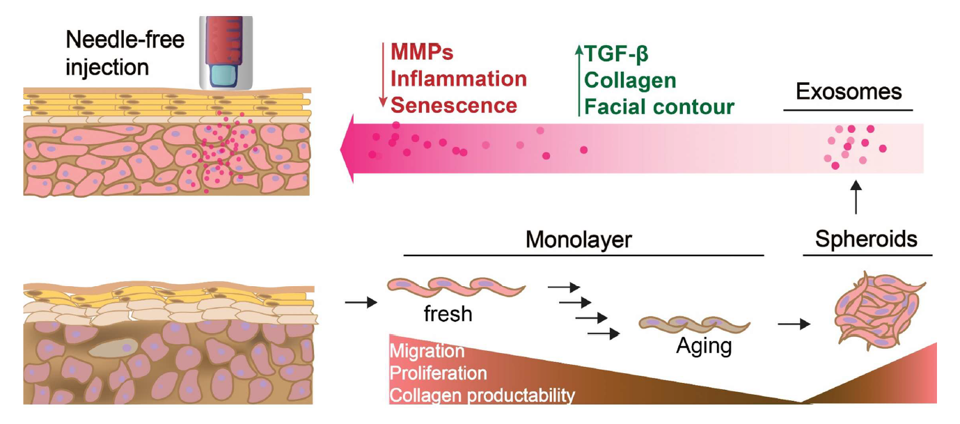 Shiqi Hu, Zhenhua Li, Jhon Cores, Ke Huang, Teng Su, Phuong-Uyen Dinh, Ke Cheng*.Needle-Free Injection of Exosomes Derived from Human Dermal Fibroblast Spheroids Ameliorates Skin Photoaging. ACS Nano. 26 Aug 2019. https://doi.org/10.1021/acsnano.9b04384