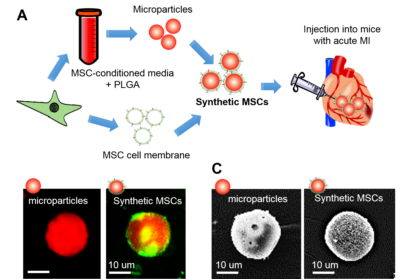 Lan L, Tang J, Nishi K, Yan C, Dinh PU, Cores J, Kudo T, Zhang J, Li T, and Cheng K. Fabrication of Synthetic Mesenchymal Stem Cells for the Treatment of Acute Myocardial Infarction in Mice. Circulation Research. 2017Mar 15. pii: CIRCRESAHA.116.310374. doi: 10.1161/CIRCRESAHA.116.310374