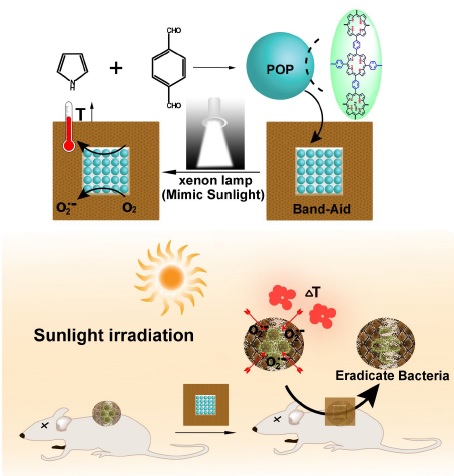 Zhenhua Li, Xiaochen Feng, Shutao Gao, Yan Jin, Wencong Zhao, Huifang Liu, Xinjian Yang, Shiqi Hu, Ke Cheng, and Jinchao Zhang. Porous Organic Polymers-coated Band-Aids for Phototherapy of Bacteria-induced Wound Infection, ACS Applied Bio Materials 10.1021/acsabm.8b00676. Link to the paper: https://pubs.acs.org/doi/10.1021/acsabm.8b00676