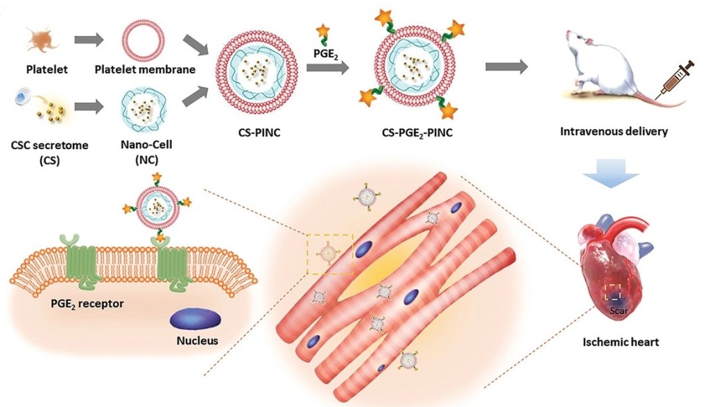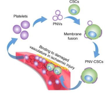 Tang J, Su T, Huang K, Dinh PU, Wang Z, Vandergriff AC, Hensley MT, Cores J, Allen T, Li TS, Sproul E, Mihalko E, Lobo LJ, Ruterbories L, Lynch A, Brown AC, Caranasos TG, Shen D, Stouffer GA, Gu Z, Zhang J, Cheng K. Targeted repair of heart injury by stem cells fused with platelet nanovesicles. Nature Biomedical Engineering. 2, 17–26 (2018) link to the paper: https://www.nature.com/articles/s41551-017-0182-xJunnan Tang, Jhon Cores, Ke Huang, Xiaolin