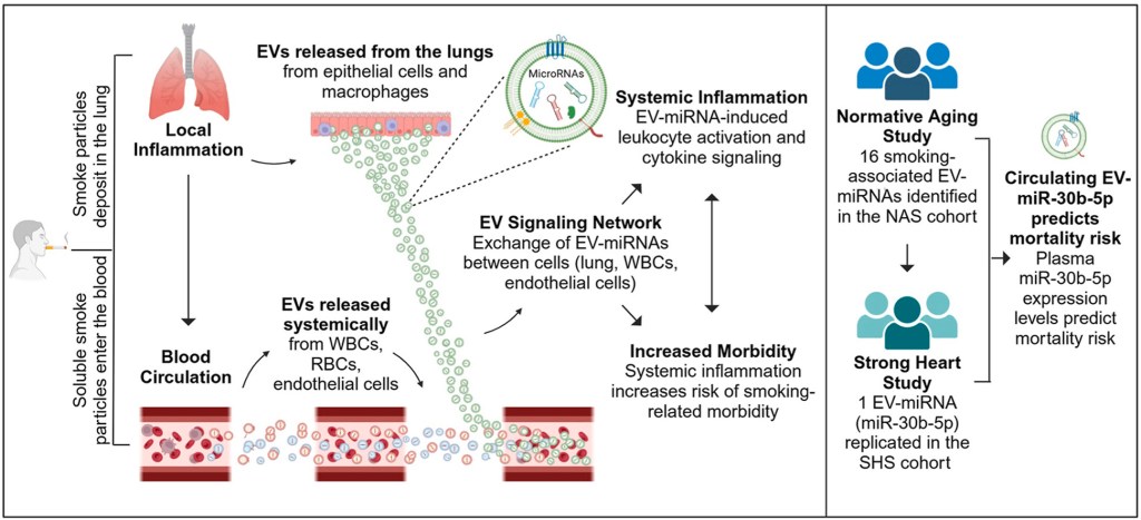 Christina M. Eckhardt*, Wending Li, Tessa R. Bloomquist, Gabriela Jackson, Naya Joglekar, Zhonghua Liu, Peter De Hoff, Pantel S. Vokonas, David Sparrow, Louise C. Laurent, Lyle G. Best, Shelley Cole, Jason G. Umans, Ying Zhang, Arce Domingo-Relloso, Tiffany R. Sanchez, Joel Schwartz, Ke Cheng, Ana Navas-Acien, Andrea A. Baccarelli, Haotian Wu. Extracellular vesicle-encapsulated microRNA signatures of cigarette smoking and smoking-related harm.