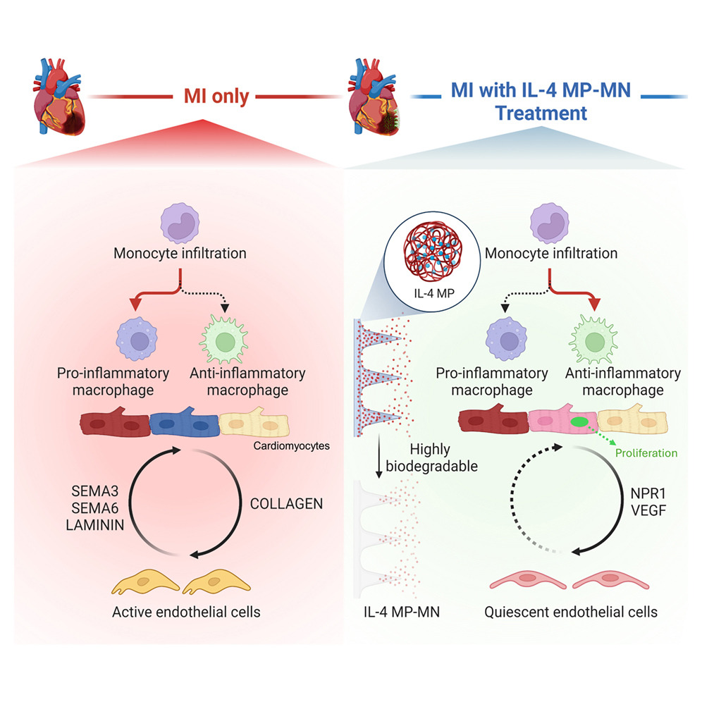Ke Huang, Dashuai Zhu, Jennifer Soto, Shiqi Hu, Jun Fang , Joyce Huang, Xuexiang Zhang, Junlang Li, Yuan Li, Panagiotis Tasoudis, Shuo Liu, Xuan Mei, Tyler Hoffman, Thomas G. Caranasos, Cunjiang Yu, Zhen Gu, Song Li, Ke Cheng*. Immunomodulatory microneedle patch for cardiac repair in rodent and porcine models of myocardial infarction. Cell Biomaterials. 23 July 2025. https://doi.org/10.1016/j.celbio.2025.100152