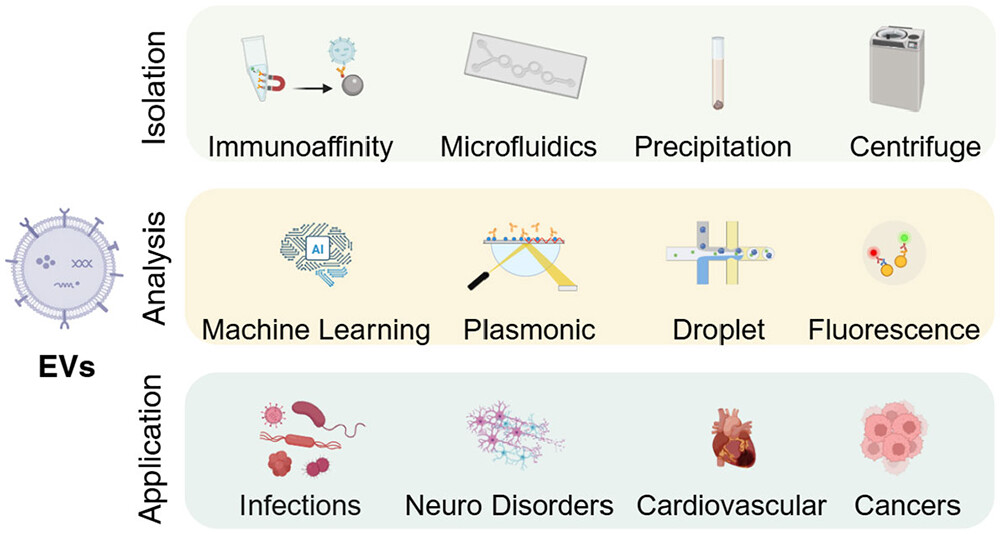 Hai Linh Tran, Wenshu Zheng*, David A. Issadore, Hyungsoon Im, Yoon-Kyoung Cho, Yuanqing Zhang, Dingbin Liu, Yang Liu, Bo Li, Fei Liu, David Tai Wai Wong, Jiashu Sun, Kun Qian, Mei He, Meihua Wan, Yong Zeng, Ke Cheng, Tony Jun Huang, Daniel T. Chiu, Luke P. Lee, Lei Zheng, Andrew K. Godwin, Raghu Kalluri, Steven A. Soper, Tony Y. Hu*. Extracellular Vesicles for Clinical Diagnostics: From Bulk Measurements to Single-Vesicle Analysis. ACS Nano. 28 July 2025. https://doi.org/10.1021/acsnano.5c00706