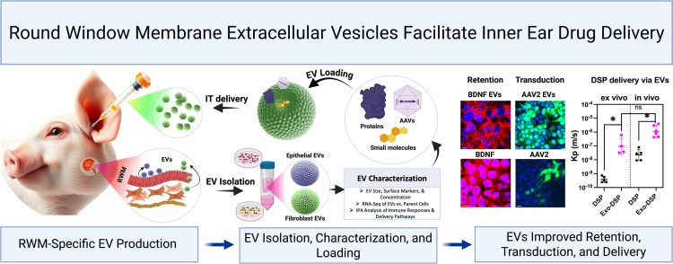 S. Holdsclaw, D. Silkstone, F. Moazzam, H. Jeanneret, N. Tehsin, E. Norris, E. Talic, K. Popowski, G. Cruse, K. Cheng, A. Moatti*. Round window membrane extracellular vesicles facilitate inner ear drug delivery. Journal of Controlled Release. 11 November 2025. https://doi.org/10.1016/j.jconrel.2025.114153.